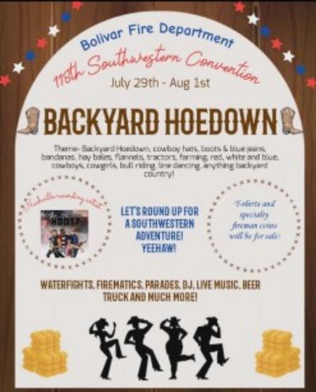 118th Annual Conventionof the Southwestern Association of Volunteer FiremenHosted byBolivar Fire DepartmentJuly 29 to August 1, 2026